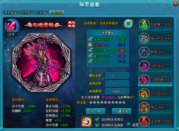2.套牌品质越高,洗炼出来的属性条数越多。