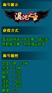 2.混沌战场活动中第一战区击败数排名第一可获得“混沌之王”称号;在除第一战区外的其他战区击败数排名第一可获得“混沌领主”称号。