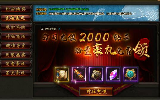2. 活动期间内,每日充值达指定钻石数额,即可领取充值奖励,可原每日充值奖励叠加领取。