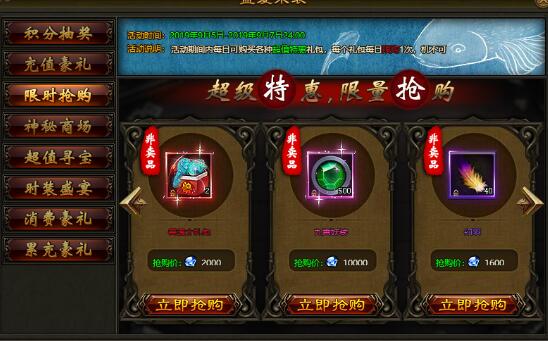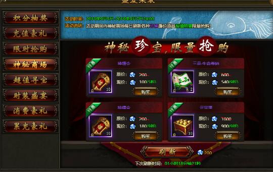 2. 活动期间内,神秘商场每日刷新各种珍稀道具,打折出售限量抢购。
