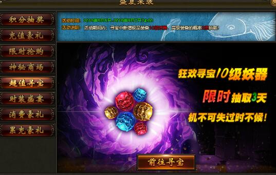 2. 活动期间,王之宝藏可抽取灭神装备!高级装备概率翻倍!活动限时3天,机不可失过时不候