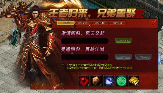 回归玩家在活动期间登录游戏、充值可领取丰厚奖励