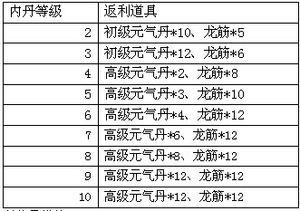 活动规则:活动期间,在刷新内丹重铸系统每消费800元宝即可获得高级元气丹*3奖励!