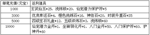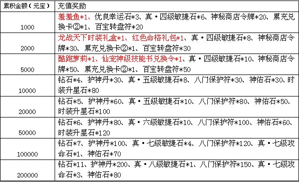 活动规则:活动期间,单笔充值达到指定额度,还可以获得以下超值丰厚的奖励哦!