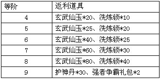 活动规则:活动期间,将橙色品质内丹升级到指定级别,可获得额外系统赠礼。