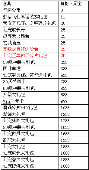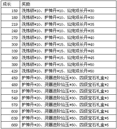活动规则:活动期间,将仙宠提升至指定成长可获得额外奖励。