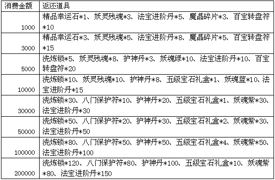 活动规则:活动期间,玩家在除市场外其他全部系统累积消费至指定额度,可获得额外的奖励。