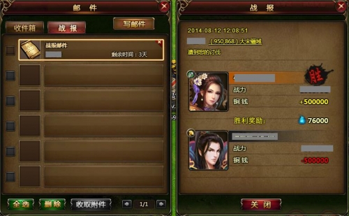 侠士可在邮箱中看到自己山庄掠夺的战报。如果有人掠夺了侠士的山庄,邮箱也会有相应的提示。