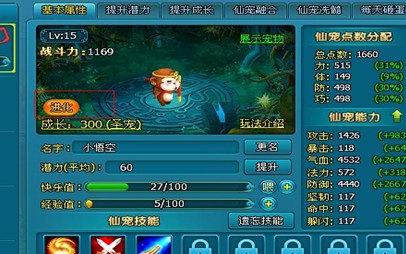 仙宠能力得到再次加强:攻击+400 防御+500 气血+6000