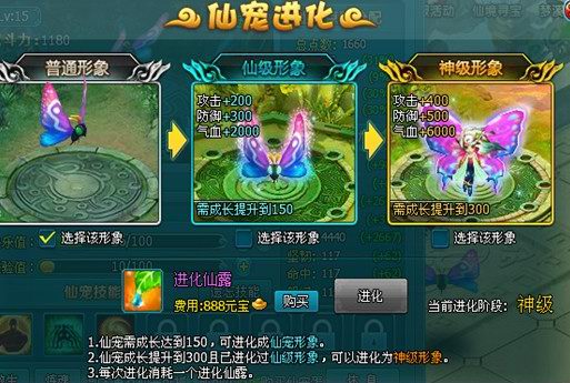 ②需提升【仙宠成长】到300才能进行第二次进化。