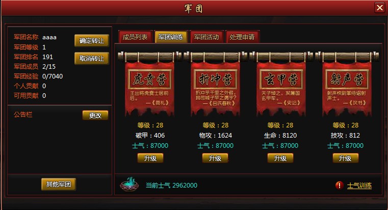 军团等级越高,玩家可进行的士气训练可达到的最大等级越高。