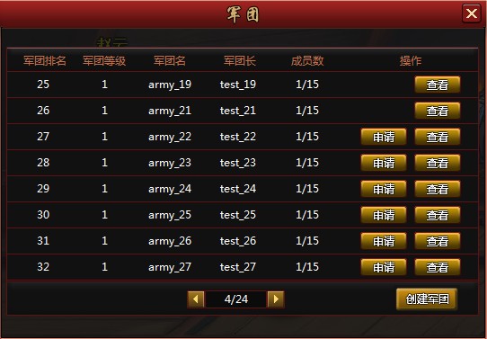 创建军团成功后,创建该军团的玩家自动成为军团长,可通过处理申请来接受其他玩家的申请或拒绝其他玩家的申请。