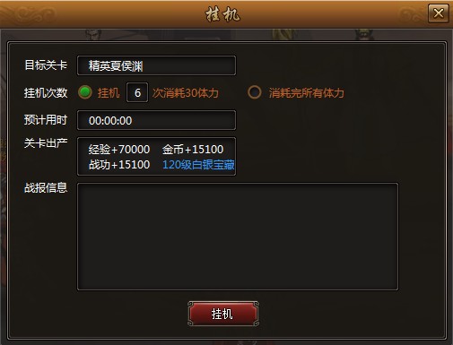 点击【挂机】之后,消耗对应的体力,并消耗一定的时间之后,即获得通关奖励。