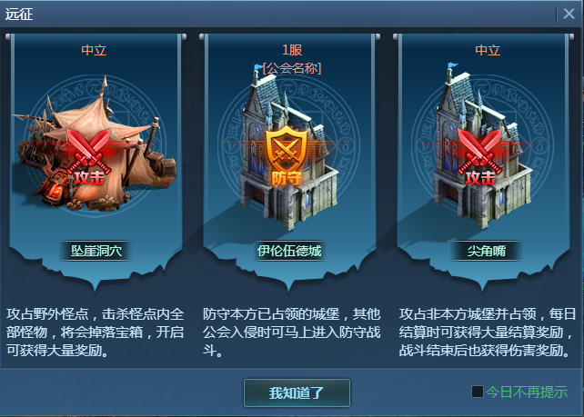3.远征开启时,将根据公会总战力进行排名,根据排名分配基地在远征场景的位置。