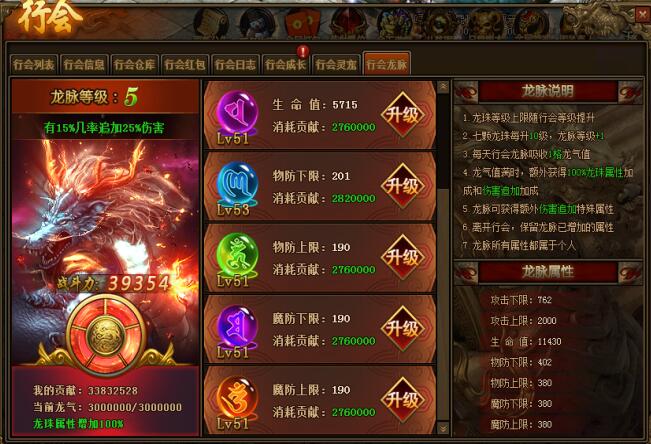 1 新增【行会龙脉】玩法(行会等级≥30级开启)