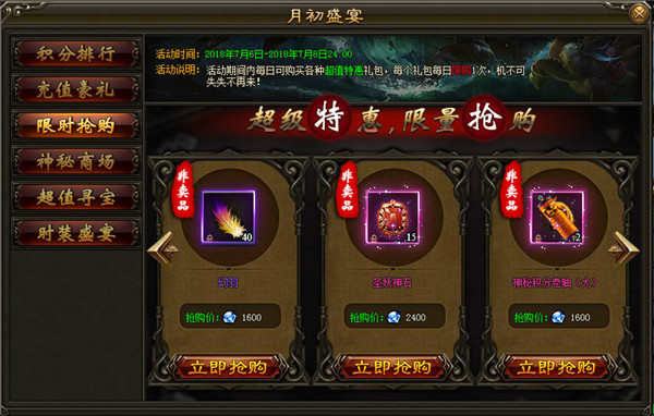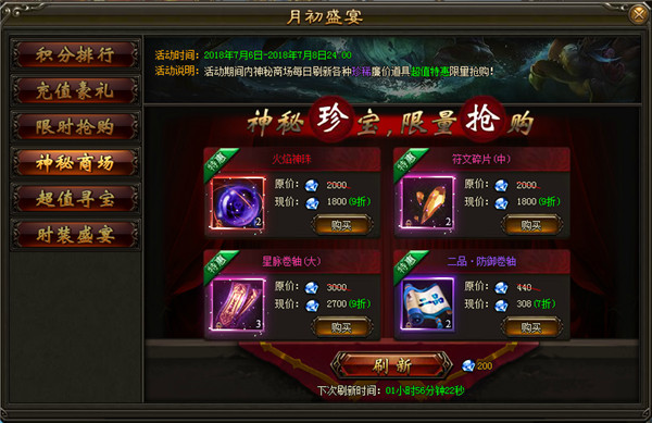2. 活动期间内,神秘商场每日刷新各种珍稀道具,打折出售限量抢购。