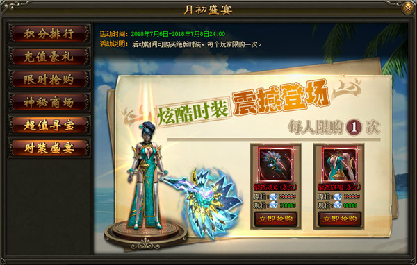 活动时间:2018年7月6日00:00—2018年7月8日23:59