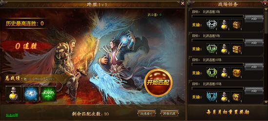 1.开服9天角色等级达到3转后开启跨服1V1玩法,玩家可打破区服限制与其他服玩家一较高下!