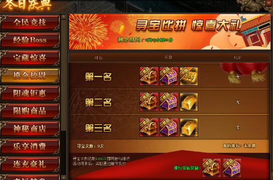第三名:名列前茅自选宝箱,传世灵器随机宝箱*1,金条(300w)*2;