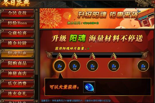 1. 活动期间,玩家获得阳魂碎片数量,达到条件可领取对应阳魂碎片奖励。