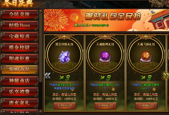 1.活动期间,玩家可在活动面板购买限购商品;(可翻页)