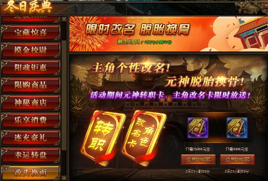 2.活动期间,玩家可在活动面板中购买主角改名卡,让你的名字个性十足;