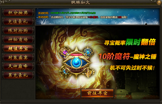 1. 活动期间,王之宝藏可抽取妖器装备!高级装备概率翻倍!活动限时3天,机不可失过时不候