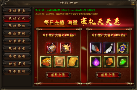 活动内容:活动期间,每日充值20元和200元即可获得超值奖励。