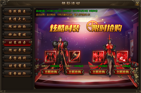 活动内容:活动期间,可购买酷炫时装,每人仅可购买1次。