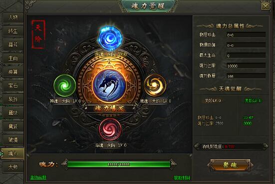 2)天魂、地魂、命魂、神魂各提升10级,可将魂力觉醒提升1阶