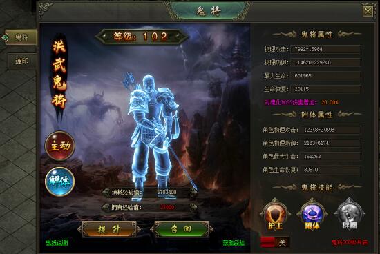 2)附体:鬼将附体于人物身上可增加人物属性,初始技能