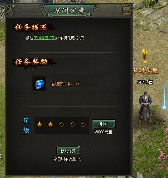 (3)可消费元宝刷新任务星级,最高5星,星级越高奖励越好