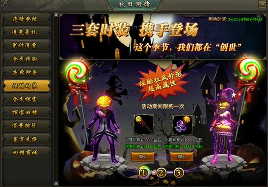活动说明:活动期间,绝版时装限时出售,炫酷拉风外型、超高属性都在这里!