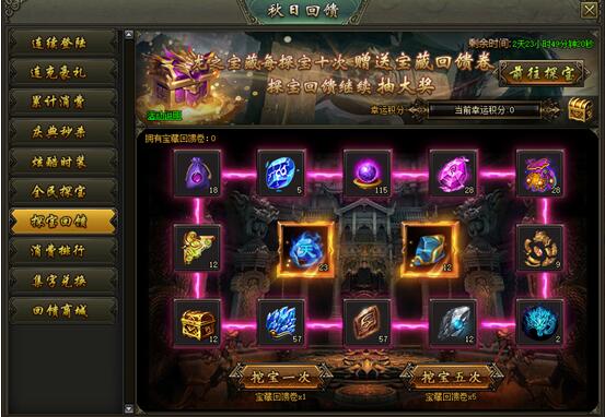 活动说明:活动期间,龙之宝藏每探宝十次赠送一张宝藏回馈卷,可继续在探宝回馈抽大奖