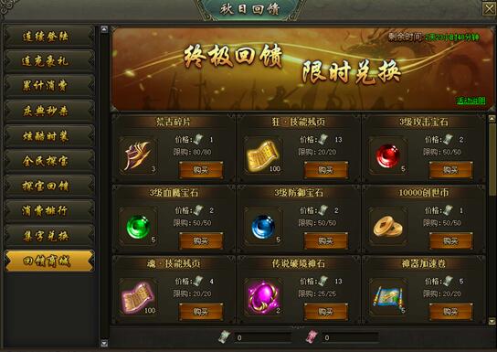 活动说明:活动期间,可使用充值回馈卷和消费回馈卷兑换大量奖励