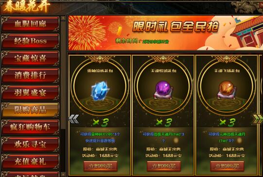 1.活动期间,玩家可在活动面板购买限购商品;(可翻页)