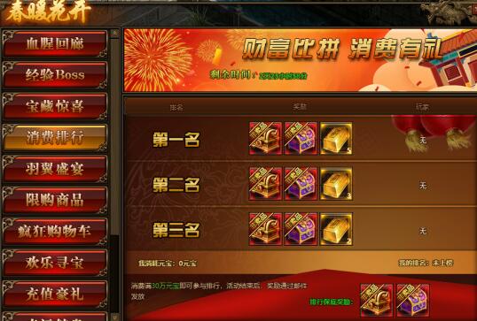第三名:名列前茅自选宝箱,传世灵器随机宝箱*1,金条(300w)*2;