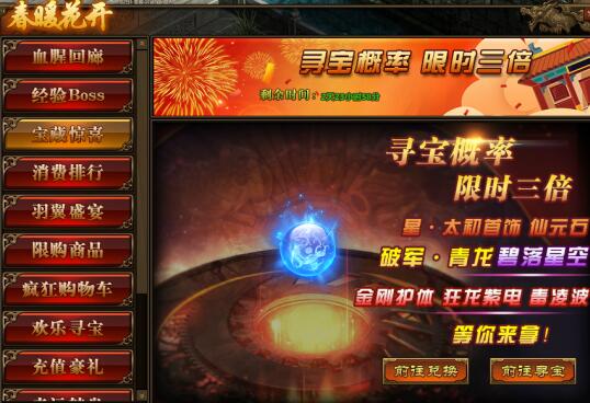 1.活动期间,玩家寻宝概率翻倍,极高几率获得星·太初首饰,特戒钢纹、仙元石、碧落星空,传世灵器、传世灵甲,封神秘法书页以及破军·青龙