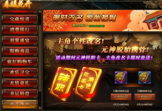 2.活动期间,玩家可在活动面板中购买主角改名卡,让你的名字个性十足;
