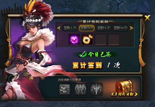 b)玩家签到每累计到相应次数,即可获得相应累计奖励