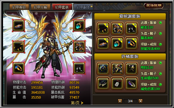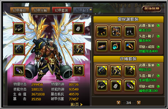 开放了2套金色品质幻甲(许褚套装及夏侯渊套装),玩家凑齐并装备一套金色品质幻甲,将可在城镇中外显该套名将造型,我们将在后续版本中开放【幻甲副本】功能,届时玩家只要激活对应的一套金色幻甲,即可化身为该武将进入幻甲副本进行挑战