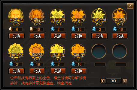 新增新属性战魂兑换道具战魂精华,可通过分解新属性战魂、单笔充值活动获得。