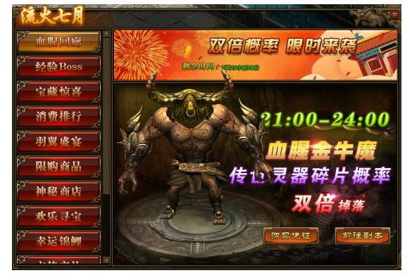 1.活动期间,玩家参与“多人副本-血腥回廊”,获得“传世灵器碎片”的概率翻倍;
