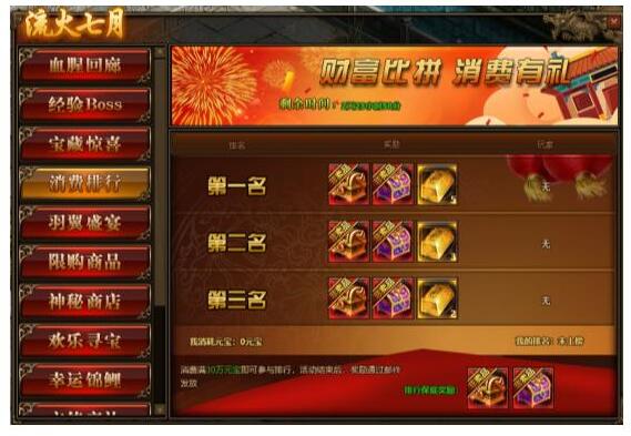 第三名:名列前茅自选宝箱,传世灵器随机宝箱*1,金条(300w)*2;