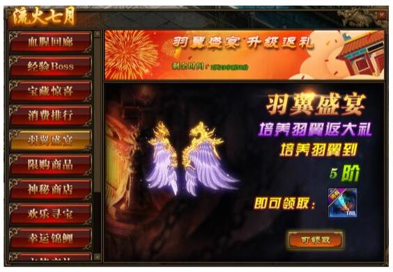 2.玩家每再提升一级的羽翼,将可再次免费领取羽毛;