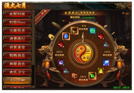 1.活动开启后奖池内默认存入88888元宝,每抽奖1次可使奖池内增加100元宝
