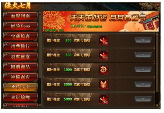 1.活动期间,玩家累积寻宝次数满足要求,可以领取本职业星石、本职业仙装、传世仙装等相应奖励;