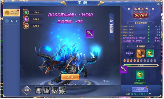 随着坐骑的阶数提升可以解锁不同的被动技能。