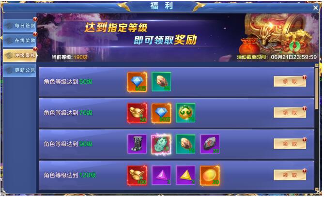 达成指定等级的玩家,可领取对应的等级奖励,活动时间有限!