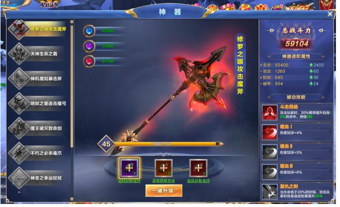 根据超自然的威力的上古神器仿制而出的多种神器,不仅有着属性的加成,随着神器等级的提升,还会激活更多的强力被动技能。